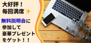 また、説明会にご参加いただいた方には有料級のプレゼントをお渡ししております。